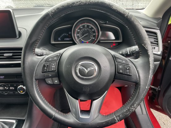 This 2016 Mazda3 SKYACTIV-G Sport Black This stylish hatchback is equipped with a responsive 2.0 litre petrol engine, meeting Euro 6 emissions standards. Inside, you'll find comfortable front heated seats, smart keyless entry for effortless access, and an integrated Bluetooth system for seamless connectivity. Dusk sensing automatic headlights and rear parking sensors add to the convenience and safety of your driving experience. The Mazda3 SKYACTIV-G Sport Black stands out with its impressive acceleration, reaching 0-62mph in just 8.9 seconds, demonstrating its dynamic performance. This model also benefits from a low insurance group, making it an economical choice for many drivers. Furthermore, you'll appreciate the generous boot space, perfect for carrying luggage or shopping. A 12 month MOT will be provided on purchase, and the vehicle comes with a 3 month warranty, ensuring you are well covered.